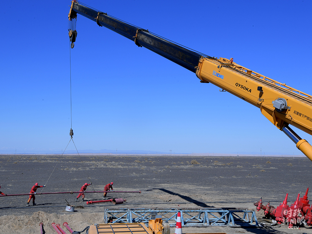 △克拉瑪依地區(qū),油田勘探開發(fā)施工現(xiàn)場(chǎng)。