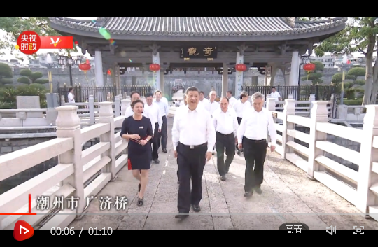 習近平總書記12日赴廣東考察調研。當天下午,他首先考察了潮州市廣濟橋、廣濟樓、牌坊街,察看文物修復保護、非遺文化傳承、文旅資源開發(fā)等情況。隨后,習近平前往潮州三環(huán)(集團)股份有限公司,了解企業(yè)自主創(chuàng)新和生產經營情況。