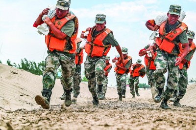 7月18日,江西九江柴桑區(qū)江洲鎮(zhèn)江新洲堤團洲村突發(fā)險情,陸軍第71集團軍某旅工兵連黨員突擊隊迅速出動。新華社發(fā)