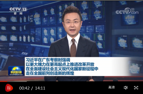 中共中央總書記、國家主席、中央軍委主席習近平近日在廣東考察時強調(diào),要堅決貫徹黨中央戰(zhàn)略部署,堅持新發(fā)展理念,堅持高質(zhì)量發(fā)展,進一步解放思想、大膽創(chuàng)新、真抓實干、奮發(fā)進取,以更大魄力、在更高起點上推進改革開放,在推進粵港澳大灣區(qū)建設、推動更高水平對外開放、推動形成現(xiàn)代化經(jīng)濟體系、加強精神文明建設、抓好生態(tài)文明建設、保障和改善民生等方面展現(xiàn)新的更大作為,努力在全面建設社會主義現(xiàn)代化國家新征程中走在全國前列、創(chuàng)造新的輝煌。