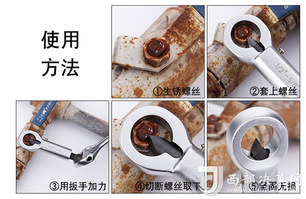 據(jù)井下工人反饋,該工具使用方法非常簡單,只需選擇孔徑合適的螺母分離器套在銹死的螺母上,然后用扳手夾禁尾部六方頭,順時針旋轉(zhuǎn)六角轉(zhuǎn)頭,使得尖刀頭切入螺母內(nèi),這時就解決了滑絲的問題,可以拆卸螺母,如果還是拆不下來,則繼續(xù)旋轉(zhuǎn)轉(zhuǎn)頭,直接把螺母切斷。