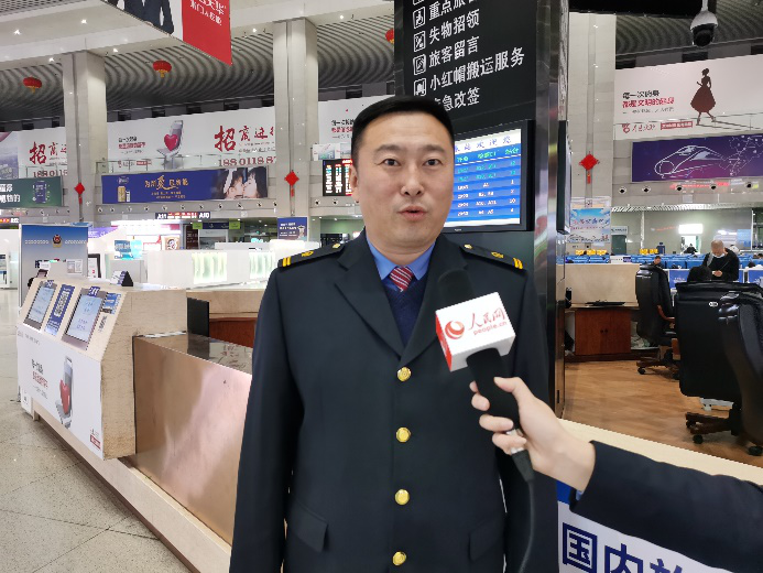 長(zhǎng)春站客運(yùn)車(chē)間值班站長(zhǎng)趙宇接受人民網(wǎng)采訪(fǎng)。人民網(wǎng) 王帝元攝