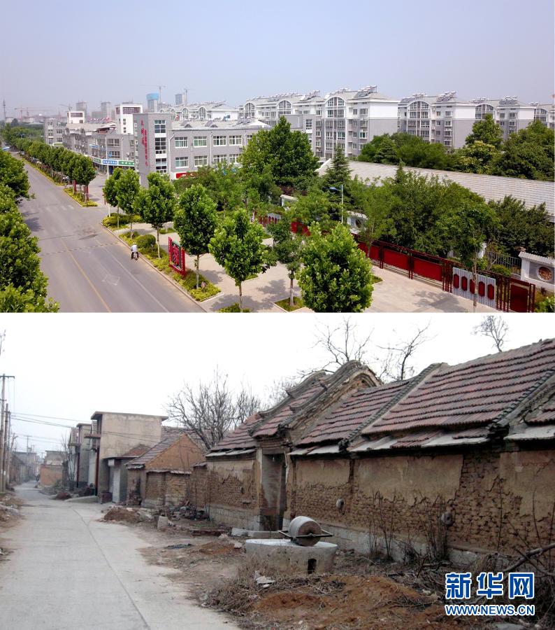 這是一張拼版照片。上圖為濟南市章丘區(qū)三澗溪村新貌(新華社記者郭緒雷6月10日攝,無人機照片);下圖為三澗溪村舊貌(資料照片)。新華社發(fā)