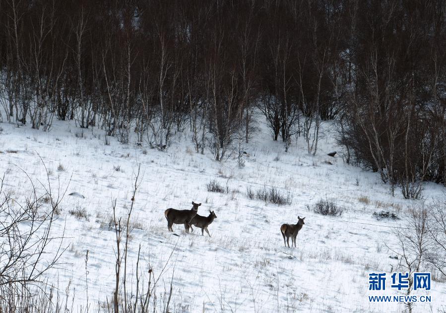 11月27日在黃崗梁國家森林公園內(nèi)拍攝的野生馬鹿。新華社發(fā)(王志國 攝)
