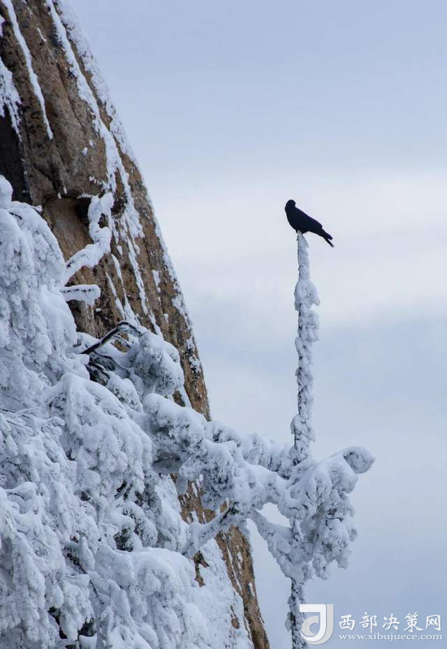 華山處處是無(wú)窮的魅力,正值冬季,寒風(fēng)蕭蕭,到處是枯木落葉,而冬季的華山確有“雪海”、“雪松”、“冰掛”、“冰瀑”、“冰雕”等奇景。漫山飄雪中,偶然碰到一只動(dòng)物,透出桀驁不馴的姿態(tài),欣賞雪景之余讓我們對(duì)這里更心生好奇。