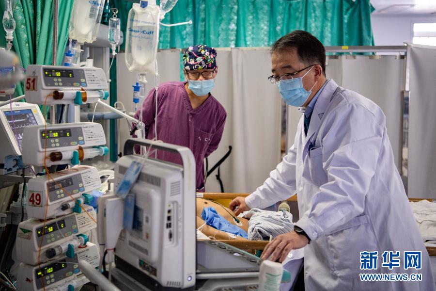 北京援藏醫(yī)生王小亭(右)在西藏自治區(qū)人民醫(yī)院病房為病人做重癥超聲評(píng)估(2月23日攝)。新華社記者 孫非 攝