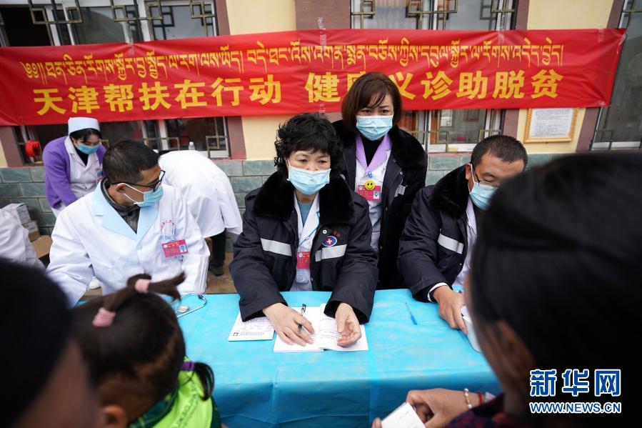 在西藏昌都市江達(dá)縣卡貢村,天津援藏醫(yī)生王佩華(中)為村民義診(9月26日攝)。新華社記者 詹彥 攝