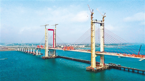 1月25日,由中鐵大橋局承建的湛江調(diào)順跨海大橋成功合龍。全長約9.36公里的調(diào)順跨海大橋?yàn)閺V東省重點(diǎn)工程,跨越湛江灣連接湛江市調(diào)順島及海東新區(qū),將對接粵港澳大灣區(qū),對加快廣東粵西片區(qū)經(jīng)濟(jì)發(fā)展發(fā)揮重要連通作用。新華社記者 劉大偉攝