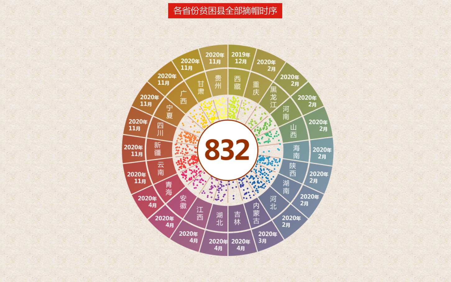 我們用832個點(diǎn)代表832個國家級貧困縣