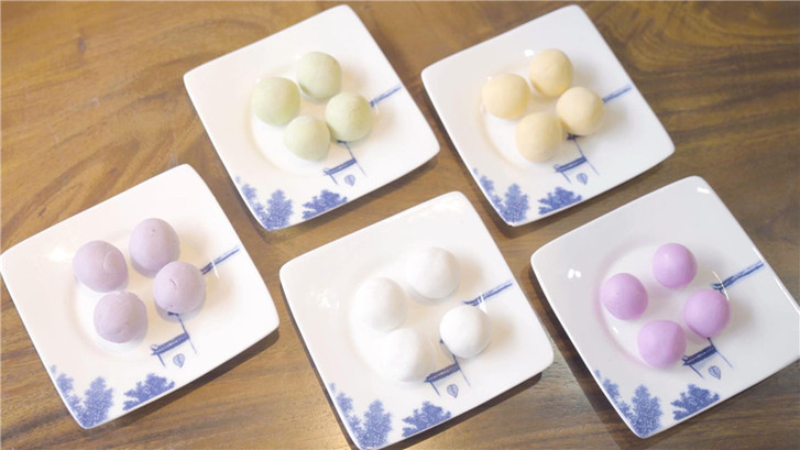 五彩湯圓制作完成。
