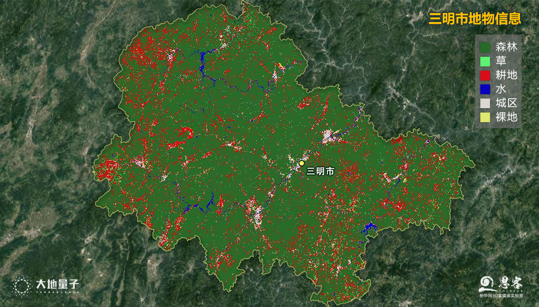 ▲三明市地物信息衛(wèi)星遙感圖。制圖:大地量子