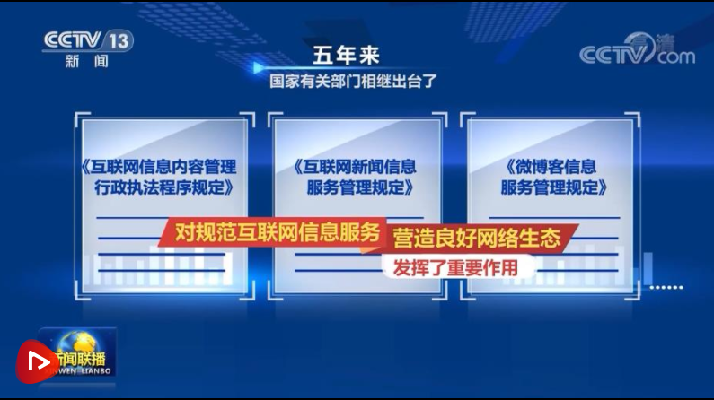 五年來(lái),國(guó)家有關(guān)部門(mén)相繼出臺(tái)了《互聯(lián)網(wǎng)信息內(nèi)容管理行政執(zhí)法程序規(guī)定》《互聯(lián)網(wǎng)新聞信息服務(wù)管理規(guī)定》《微博客信息服務(wù)管理規(guī)定》等一系列法規(guī),對(duì)規(guī)范互聯(lián)網(wǎng)信息服務(wù)、營(yíng)造良好網(wǎng)絡(luò)生態(tài)發(fā)揮了重要作用,正能量高揚(yáng),網(wǎng)絡(luò)環(huán)境日漸清朗。