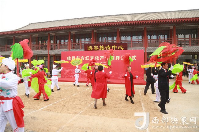 開(kāi)園儀式上,彩旗飄揚(yáng),鑼鼓喧天。上午10時(shí)30分,佳縣縣委書記劉生勝隆重宣布:“東方紅文化產(chǎn)業(yè)園正式開(kāi)園,歷時(shí)建設(shè)多年的東方紅文化產(chǎn)業(yè)園正式啟動(dòng),標(biāo)志著佳縣紅色文化旅游發(fā)展邁上了新臺(tái)階。”