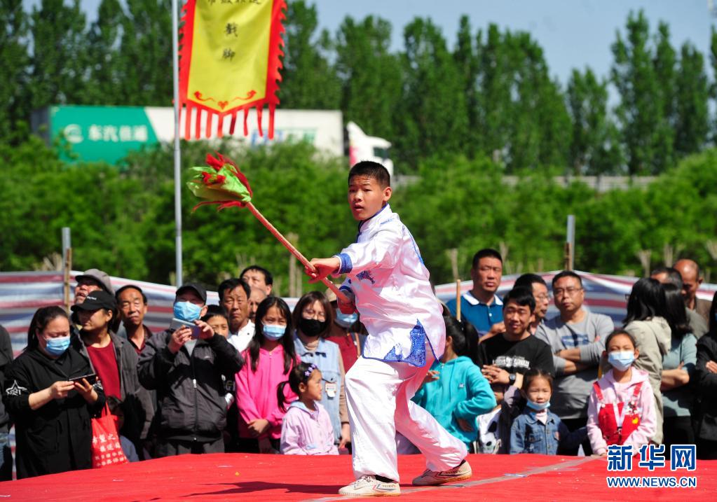 5月2日,習武者在河北滄州肅寧縣西泊莊牡丹文化園表演五虎斷門槍。文化和旅游部5月5日晚間公布2021年“五一”假期旅游市場數(shù)據(jù)。統(tǒng)計顯示,5月1日至5日,全國國內旅游出游2.3億人次,同比增長119.7%,按可比口徑恢復至疫前同期的103.2%。新華社記者 朱旭東 攝