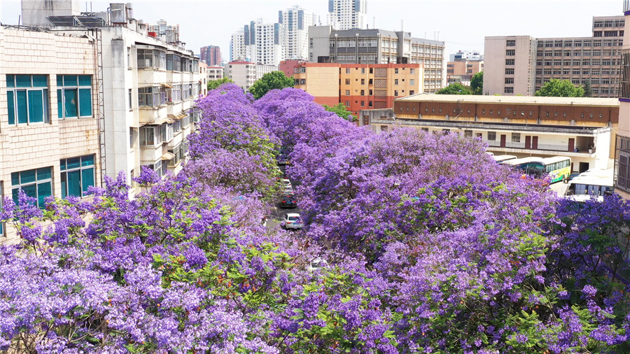 【“飛閱”中國】用藍(lán)花楹敲開昆明夏天的門