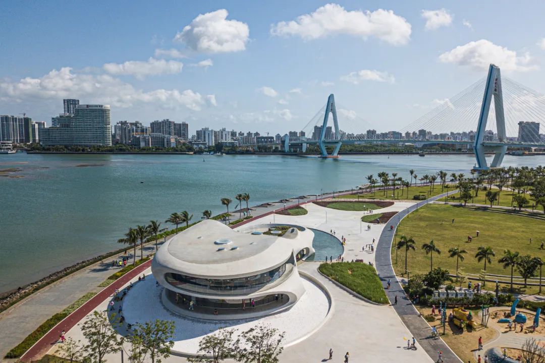 ▲“十四五”開局之年,也是海南全面深化改革開放和加快建設(shè)自由貿(mào)易港關(guān)鍵之年。這是5月3日在海口拍攝的云洞圖書館,遠(yuǎn)處是??诘貥?biāo)世紀(jì)大橋(無人機(jī)照片)。新華社記者 蒲曉旭 攝