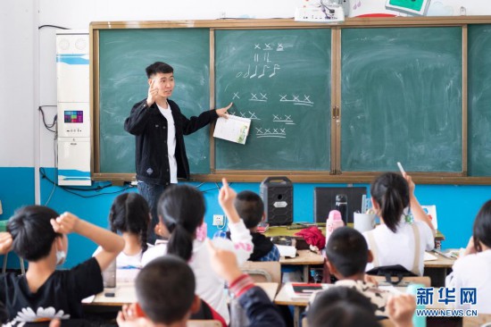 在黑龍江省安達市任民鎮(zhèn)中心小學,音樂老師李平在教室里上音樂課(5月25日攝)。新華社記者 謝劍飛 攝