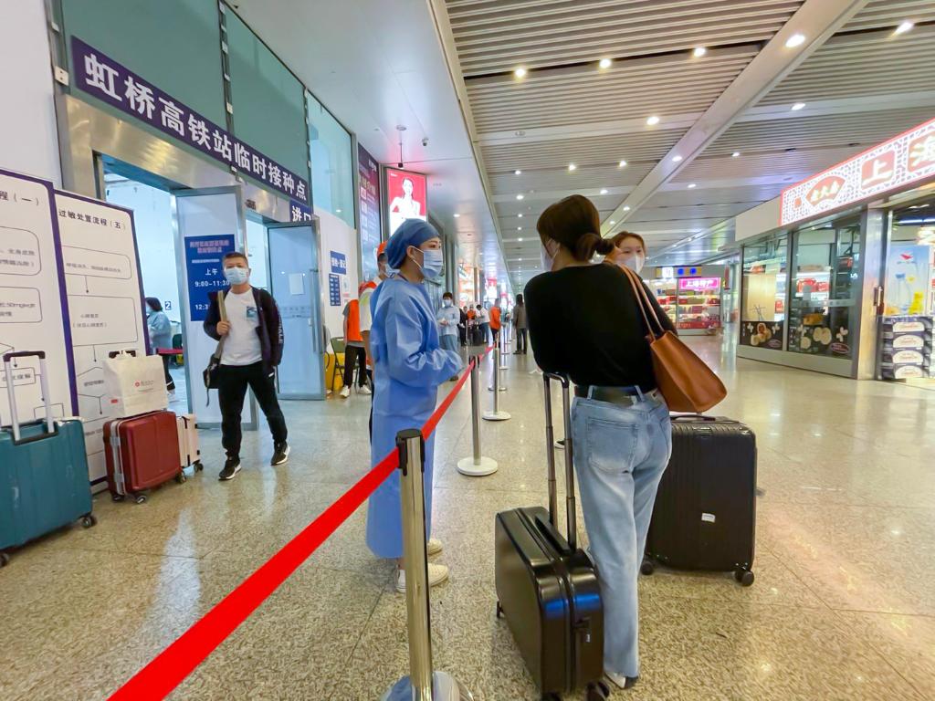 2021年5月29日,上海,旅客在上海虹橋火車站臨時疫苗接種點向醫(yī)務人員咨詢。新華社記者 黃安琪 攝