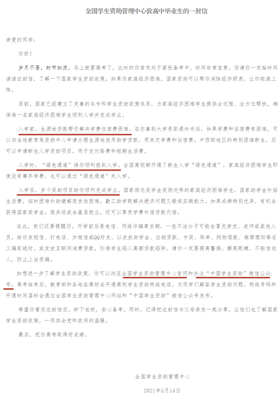 全國(guó)學(xué)生資助管理中心已經(jīng)向