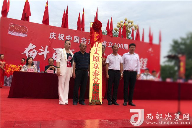 西部決策網(wǎng)訊(記者李乃斌)2021年6月23日,由中央廣播電視總臺——中央新影發(fā)現(xiàn)之旅頻道匠心精神欄目組、中國共產(chǎn)黨陜西京泰集團總支部委員會主辦,陜西省紡織行業(yè)協(xié)會、寶雞市民營企業(yè)協(xié)會、寶雞市女企業(yè)家協(xié)會、寶雞市老年科技工作者協(xié)會協(xié)辦的“奮斗百年路 啟航新征程”慶祝中國共產(chǎn)黨成立100周年大會暨黨史館授牌儀式,在陜西五丈原京泰黨史館廣場舉行。