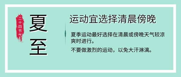 夏季運動時間宜在清晨或傍晚,此時天氣涼爽,可以采用健步走、慢跑、太極拳等運動緩和的項目進行體育鍛煉,宜避開烈日熾熱之時且不宜做過分劇烈的活動,以免汗出太過,損傷陽氣,耗傷陰氣,且運動后不可用冷水淋浴或沖頭。