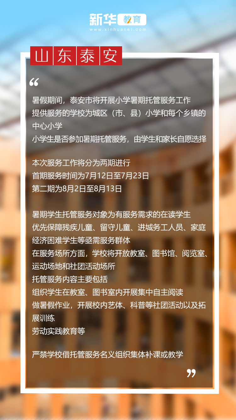 和上海市的做法類似,北京、武漢等地,也發(fā)揮資源優(yōu)勢,積極志愿為學生提供暑期托管服務。與此同時,北京明確要求“不組織學科培訓和集體授課”;上海明確暑托班堅持“公益、自愿”原則;山東泰安也提出“對家庭條件困難的學生,將免收服務費用”,這些做法在給予家長更多選擇的同時,也進一步為家長減輕了育兒成本。