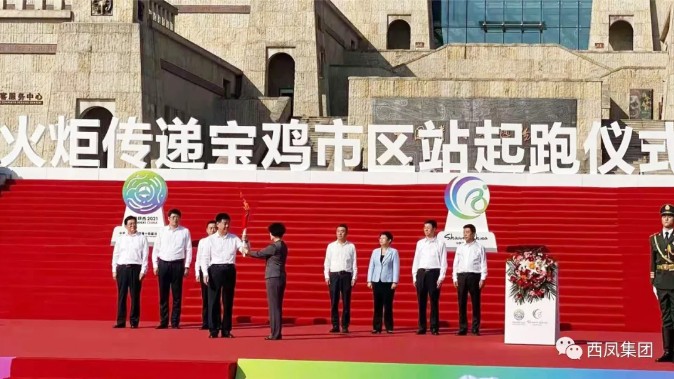 西鳳集團(tuán)公司黨委書記、董事長,西鳳股份公司董事長張正傳遞火炬