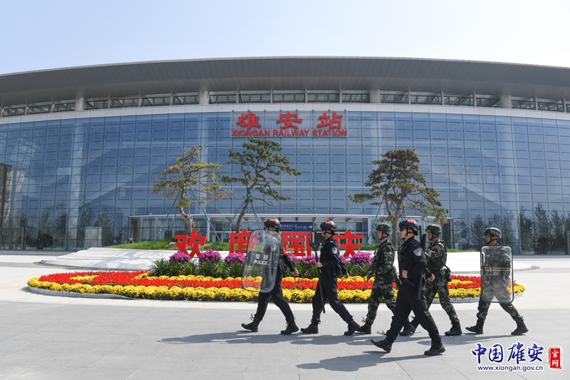 雄安站樞紐片區(qū)公安分局和武警河北總隊保定支隊某部正在進行聯合巡邏。任雙歡 攝