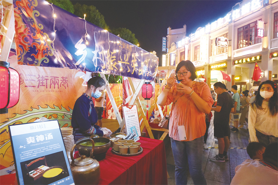據(jù)悉,國慶期間,有關(guān)部門還在“三街兩巷”舉辦“八桂風(fēng)物 獻(xiàn)禮華誕——助力鄉(xiāng)村振興特色展”,展示展銷北海潿洲島特色干海味、玉林博白特色牛巴、永福羅漢果花茶等特色農(nóng)副產(chǎn)品,以及龍勝侗族扎染技藝、靖西壯族藍(lán)染技藝等廣西非物質(zhì)文化遺產(chǎn)工藝產(chǎn)品,鞏固脫貧攻堅(jiān)成果、助力鄉(xiāng)村振興。(記者宋延康)