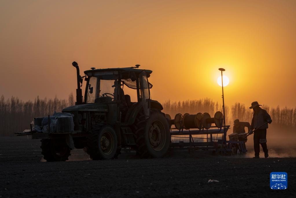陸高林在一片已播種的棉地里清理滴管管道設(shè)備,為出苗時(shí)的水肥供給做準(zhǔn)備(4月15日攝)。新華社記者 胡虎虎 攝