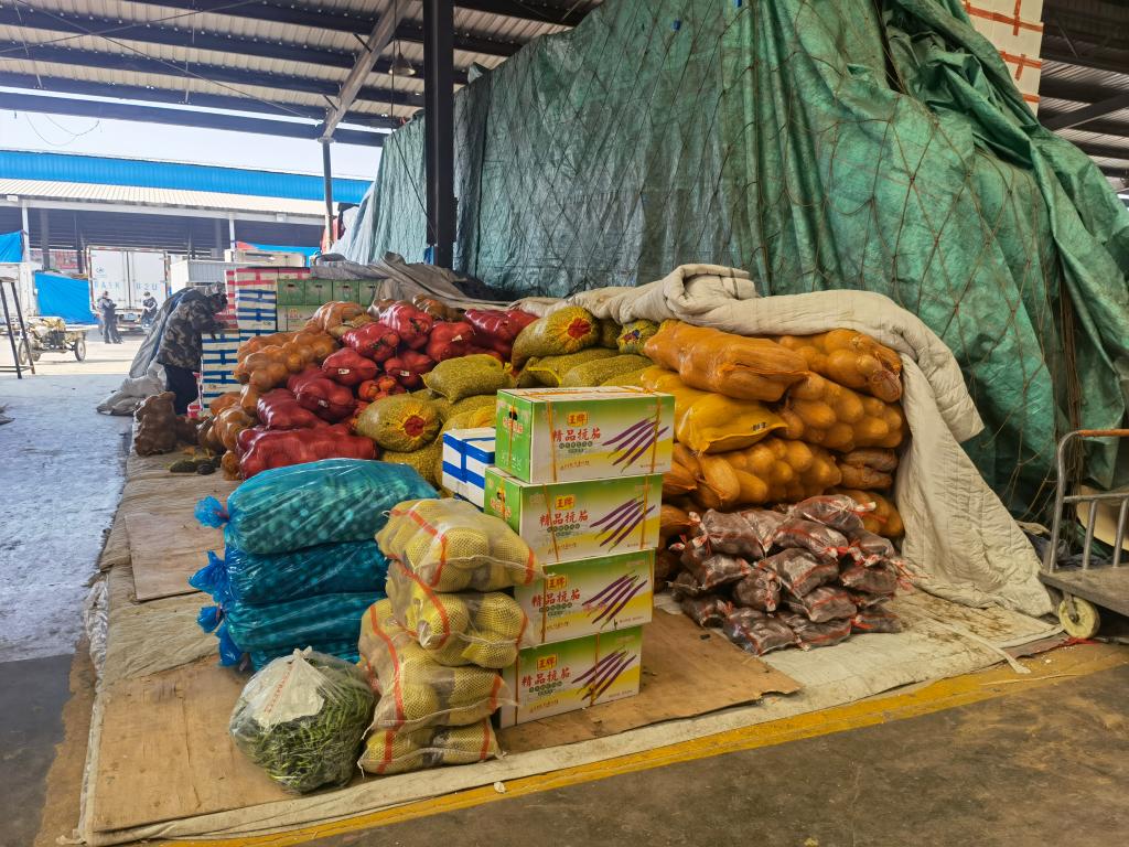 圖為青藏高原農(nóng)副產(chǎn)品集散中心內(nèi)的蔬菜攤位。 新華社記者 王浡 攝