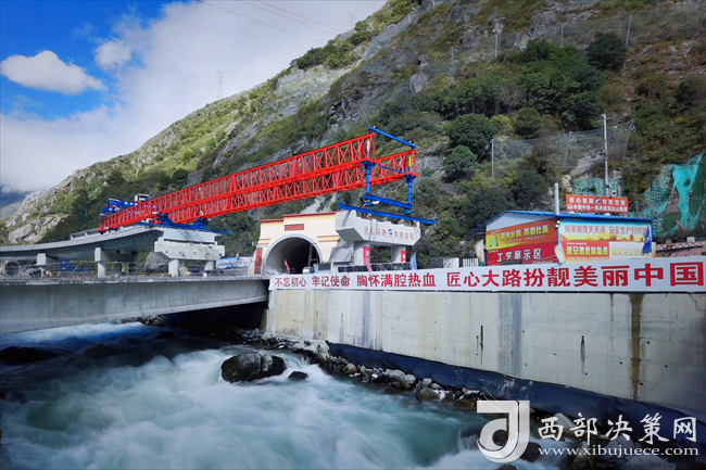 西部決策網(wǎng)訊11月29日,國(guó)道318線康定市過(guò)境段公路工程起點(diǎn)互通立交連接線最后一片T梁平緩地躺在康定河水面。至此,中鐵一局四公司國(guó)道318項(xiàng)目所有預(yù)制梁全部架設(shè)完畢。