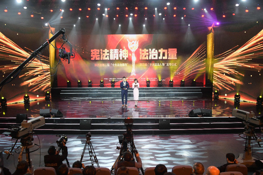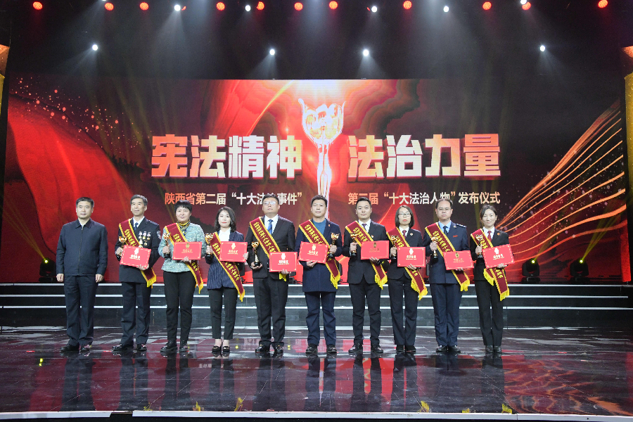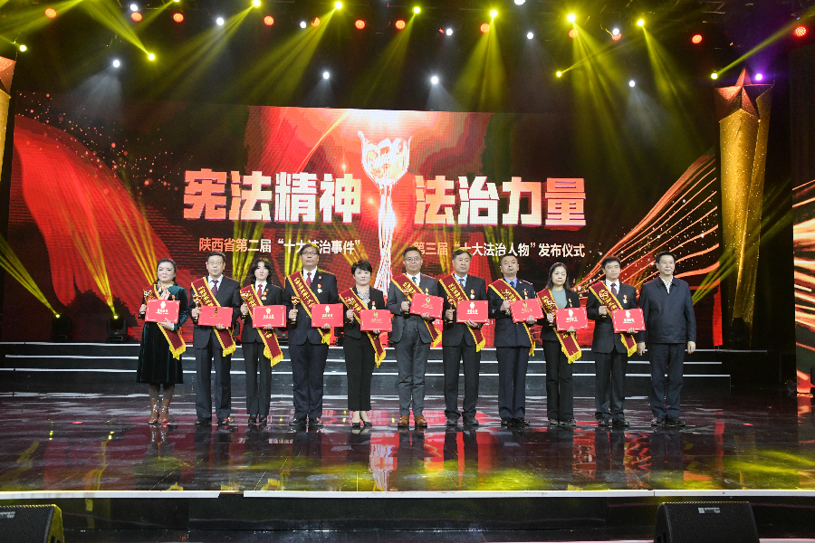 發(fā)布儀式現(xiàn)場播放了“十大法治事件”“十大法治人物”及提名獎的先進事跡短片,揭曉了陜西省第二屆“十大法治事件”、第三屆“十大法治人物”及提名獎獲得者。“全國首創(chuàng)黨委(黨組)書記點評法治工作機制切實夯實‘一把手’履行法治建設責任”等10個事件被評為第二屆“十大法治事件”、“陜西出臺自由貿(mào)易試驗區(qū)條例助推自貿(mào)區(qū)高質(zhì)量發(fā)展”等10個事件被評為第二屆“十大法治事件”提名獎,西安交通大學法學院二級教授馬治國等10名同志被評為第三屆“十大法治人物”、咸陽市中級人民法院速裁中心主任李春麗等10名同志被評為第三屆“十大法治人物”提名獎。