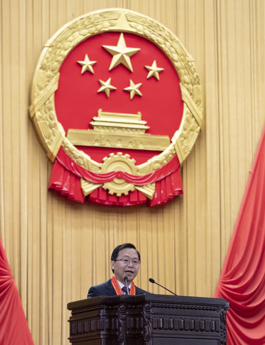 全國抗擊新冠肺炎疫情先進個人、全國優(yōu)秀共產(chǎn)黨員、北京協(xié)和醫(yī)院感染內(nèi)科主任醫(yī)師劉正印發(fā)言。新華社記者 謝環(huán)馳 攝