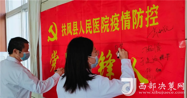 為全力做好汽車(chē)站疫情防控工作,院黨總支向全院黨員發(fā)出動(dòng)員倡議書(shū),職能、臨床內(nèi)科、臨床外科和醫(yī)技黨支部迅速響應(yīng),積極動(dòng)員。11月23日下午,全體黨員在院多功能廳面對(duì)黨旗莊嚴(yán)宣誓:“自愿加入疫情防控黨員先鋒隊(duì),堅(jiān)決以行動(dòng)譜寫(xiě)忠誠(chéng),用實(shí)干詮釋擔(dān)當(dāng),堅(jiān)守崗位,盡職盡責(zé),不畏懼、不退縮、不計(jì)得失,全力以赴阻擊疫情,守護(hù)人民群眾的生命健康”。隨后,院黨總支書(shū)記、院長(zhǎng)馬忠科,副書(shū)記、副院長(zhǎng)蘇長(zhǎng)岐,支委委員王文輝、趙軒弘、張軍強(qiáng)、陳文博等院領(lǐng)導(dǎo)帶頭在先鋒隊(duì)隊(duì)旗上簽名許下了“愛(ài)的諾言”。