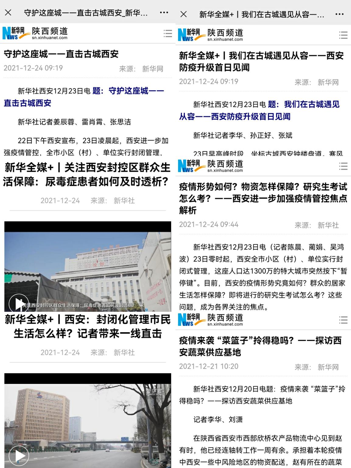 從關(guān)注尿毒癥患者如何及時透析到封閉化管理市民生活怎樣,從西安防疫升級首日見聞到記者答疑確診病例為何增長迅速,從新一輪核酸檢測現(xiàn)場到蔬菜保供打消市民恐慌……新華社記者每天從城市的各個角落發(fā)回第一手消息,用他們的筆觸、鏡頭向廣大網(wǎng)民展現(xiàn)西安城的堅(jiān)守和溫暖,最大程度還原這座城市疫情防控過程中每一個環(huán)節(jié)的進(jìn)展與成效。