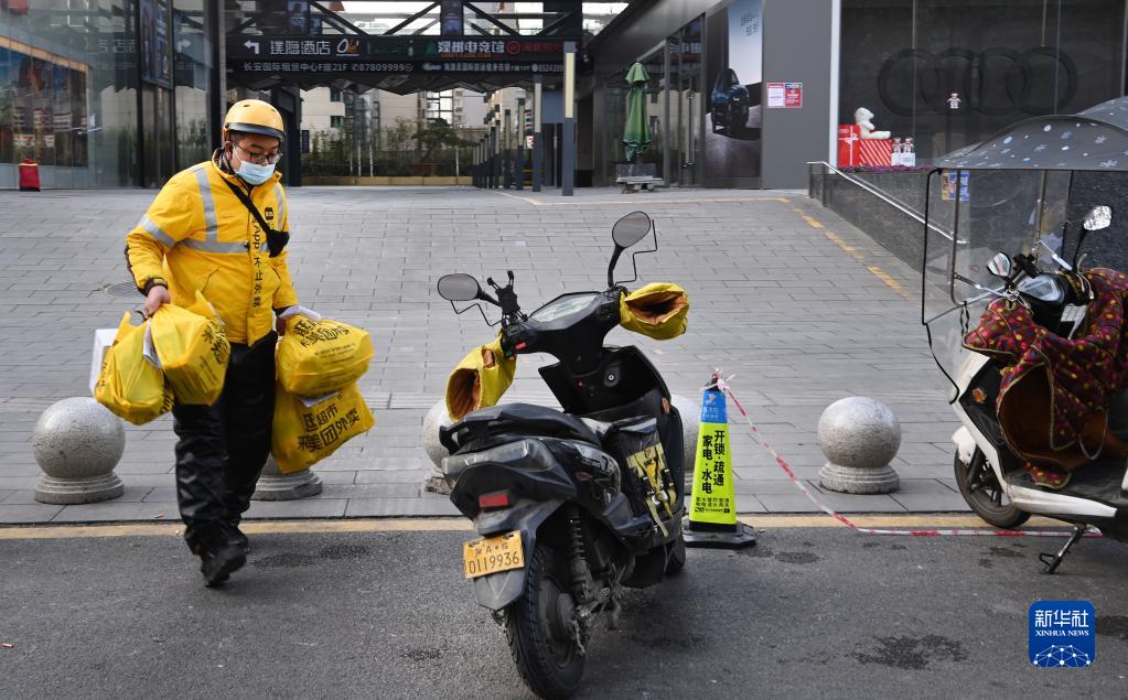 12月26日,外賣員在西安市南門外路邊忙碌。新華社記者 陶明 攝