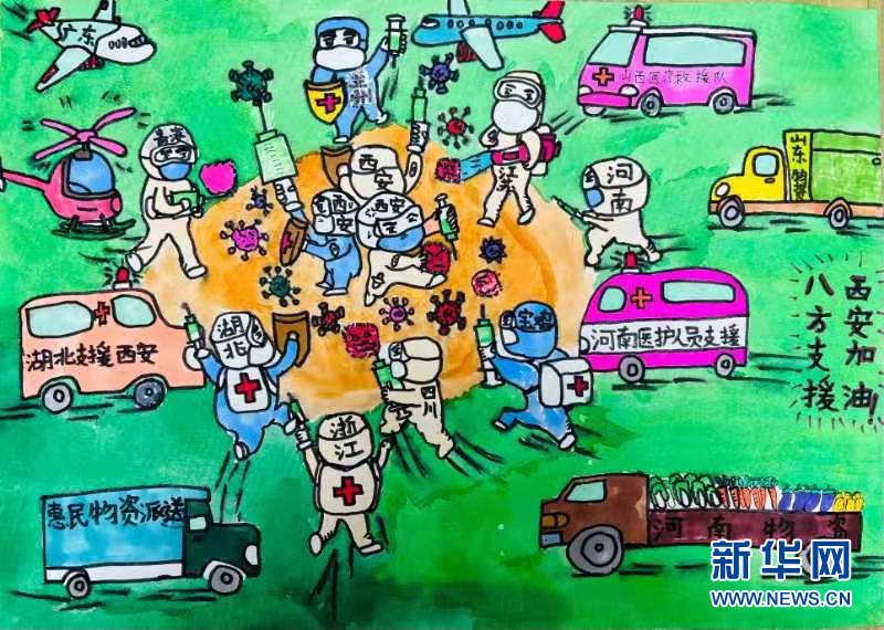 1月2日,西安市鄠邑區(qū)甘亭中心學(xué)校的孩子們用最自己的方式宣傳居家防疫知識,用手中的畫筆表達(dá)他們對抗疫英雄的贊美,為抗疫一線的英雄加油!為西安加油!(張思思 趙影超 王展榮)