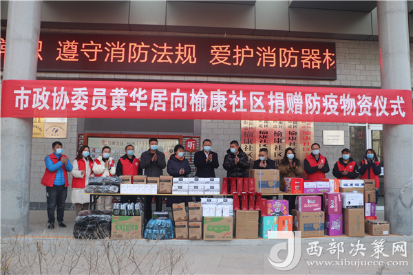 西部決策網(wǎng)訊 1月5日下午,榆林市政協(xié)委員、民盟盟員、陜西浙能能源開發(fā)有限公司董事長(zhǎng)黃華居走進(jìn)沙河路街道榆康社區(qū)將愛心防疫物資和慰問品送到一線防疫工作人員手中,助力疫情防控,充分彰顯了政協(xié)委員的責(zé)任和擔(dān)當(dāng)。市政協(xié)秘書長(zhǎng)柴自軍、提案委主任郭麗芳參加捐贈(zèng)儀式,柴自軍秘書長(zhǎng)為政協(xié)委員黃華居頒發(fā)了榮譽(yù)證書,表彰他在新冠肺炎疫情工作中的善行義舉。