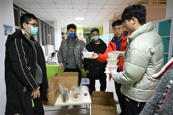 為了讓同學(xué)們?cè)谕馇髮W(xué)的第一個(gè)冬至過(guò)的有意義,羅慶輝與班委們精心策劃,用班費(fèi)提前在餐廳預(yù)定了106份水餃,他們做好分工、分組分批送達(dá)同學(xué)們手中。“由于疫情原因,我們班級(jí)原本計(jì)劃的冬至集體包餃子活動(dòng)不得不取消了,我想盡可能的彌補(bǔ)這個(gè)遺憾,讓同學(xué)們?cè)诙寥匀荒艹缘蒙巷溩?,而且吃上屬于我們班?jí)的餃子。”羅慶輝說(shuō)道。