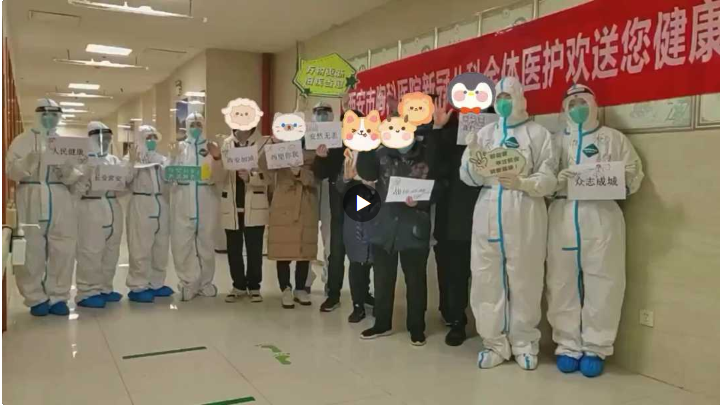患者小呂與“大白”們一一招手道別。她馬上就要由西安胸科醫(yī)院轉(zhuǎn)出接受健康監(jiān)測、康復(fù)隔離。“大白加油,謝謝你們守護(hù)我們。”小呂在紙上寫下臨別贈(zèng)語,這是每一位出院患者的“道別儀式”。