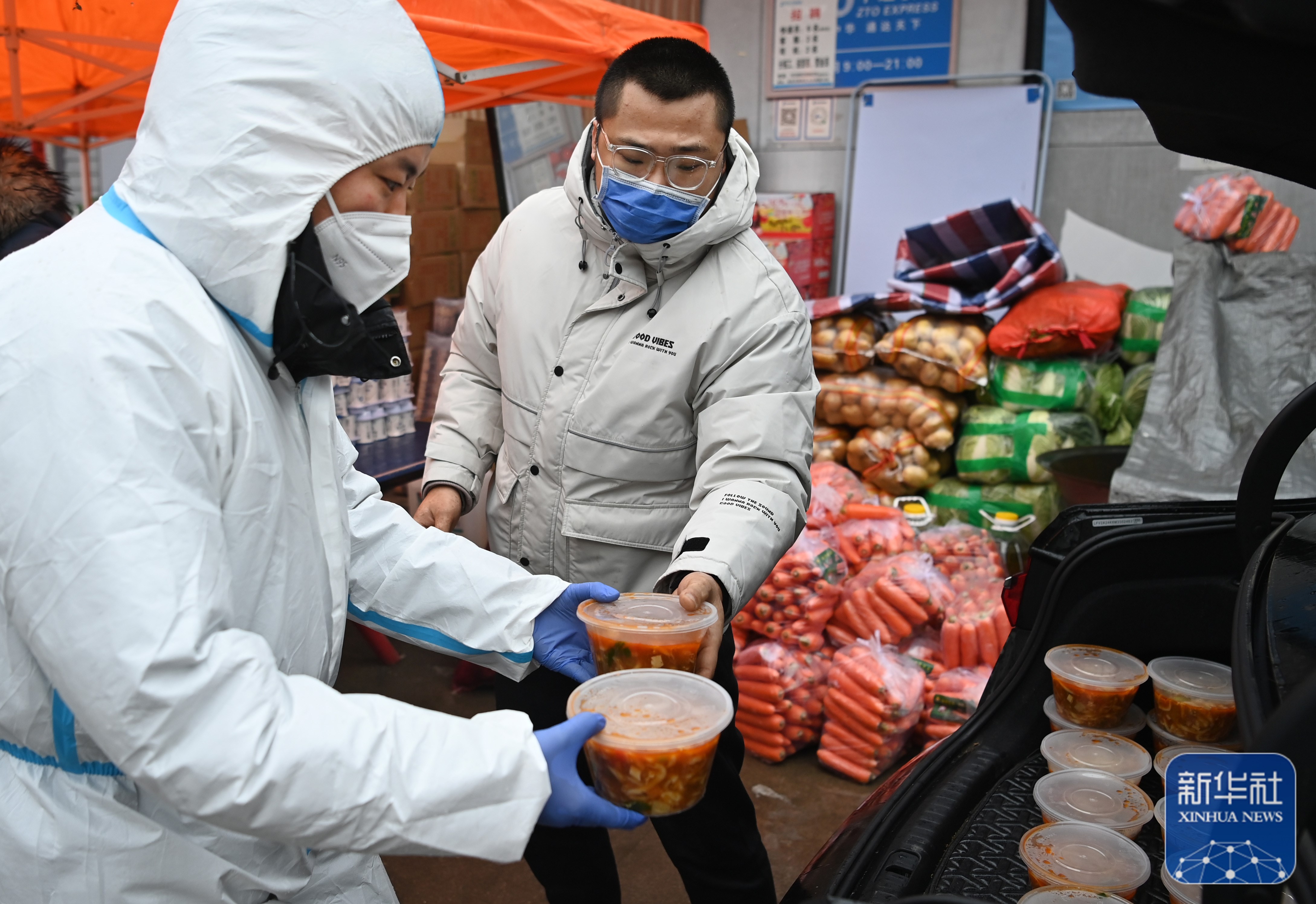1月8日,許凱(右) 與志愿者一起出門運送“愛心餐”。