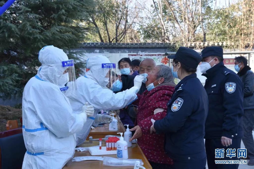 秦嶺腳下,西安市周至縣,雪一場(chǎng)比一場(chǎng)厚,四屯鎮(zhèn)渭永村,核酸檢測(cè)正在進(jìn)行。