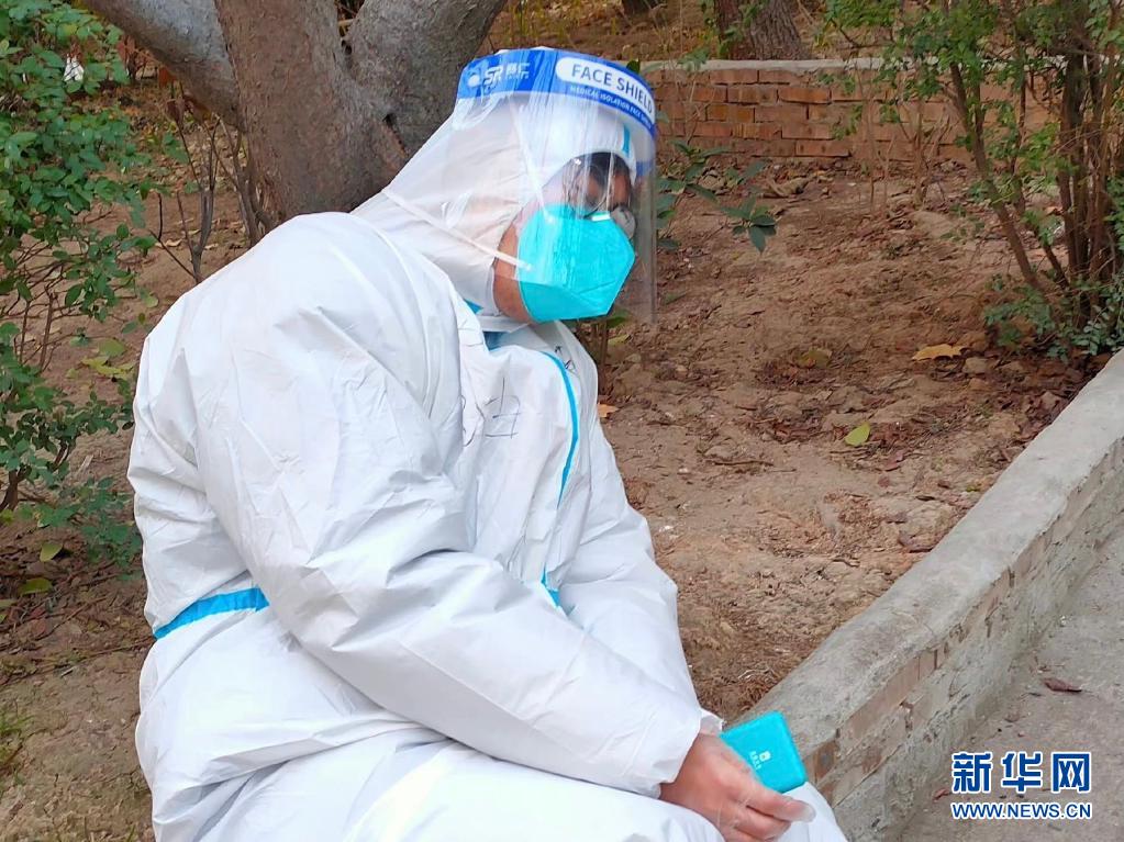 西安市蓮湖區(qū)環(huán)城西路街道西儀社區(qū),25歲的志愿者陸遠(yuǎn)累得靠在小區(qū)路邊的樹旁睡著了。