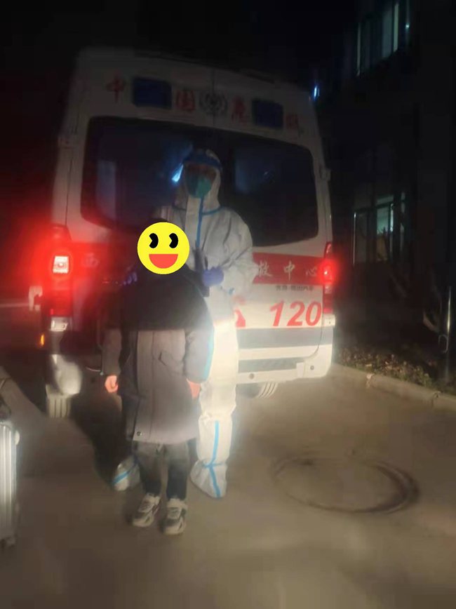 車組按照轉運隊既定流程迅速到達患者所在的小區(qū),準備進行轉運時,他們得知只有男童一人核酸檢測呈陽性,父母核酸均是陰性,所以只能將孩子一人送至定點醫(yī)院。