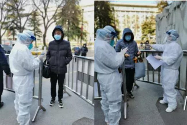 醫(yī)護人員在大門口接診透析患者。陜西省中醫(yī)醫(yī)院供圖