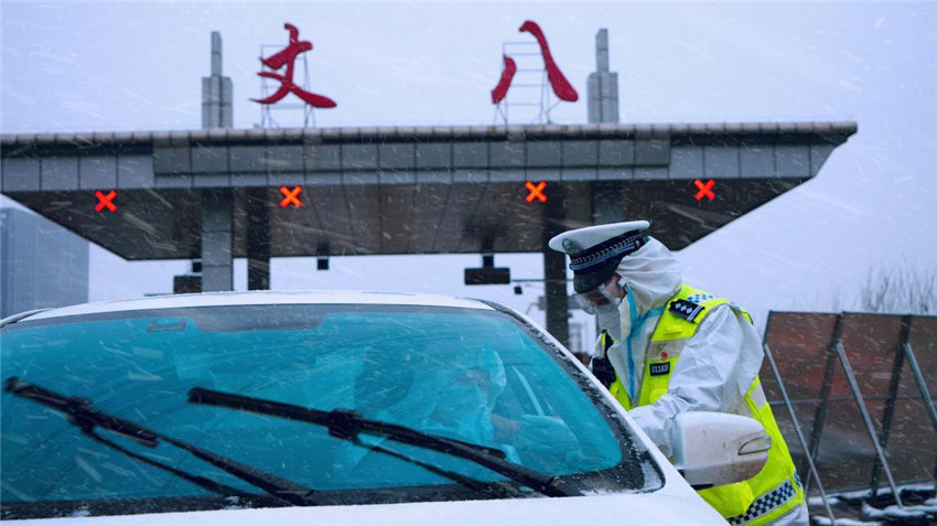 臨退休民警朱永強(qiáng)雪天值守抗疫一線。