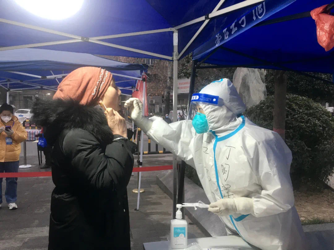 第二次婚期定于12月18日,14日丁明輝在科室交接完手頭工作,開(kāi)始休假籌備婚禮事宜。晚7點(diǎn)回到家就聽(tīng)說(shuō)長(zhǎng)安大學(xué)出現(xiàn)疫情,整個(gè)學(xué)校連夜進(jìn)行核酸檢測(cè)。她深知,兇猛的疫情此時(shí)更需要醫(yī)務(wù)工作者,需要自己。第二天她在社區(qū)完成自己的核酸檢測(cè),得到陰性報(bào)告后,遂結(jié)束休假返回醫(yī)院上班,此后服從醫(yī)院派遣多次外出執(zhí)行核酸采集任務(wù),并于25日起開(kāi)始留住醫(yī)院準(zhǔn)備參加定點(diǎn)醫(yī)院支援。后因任務(wù)調(diào)整,2022年1月2日晚來(lái)到回民街市五院第10核酸采樣隊(duì),開(kāi)始和同事一起執(zhí)行廟后街社區(qū)及市區(qū)多處核酸采集工作至今。