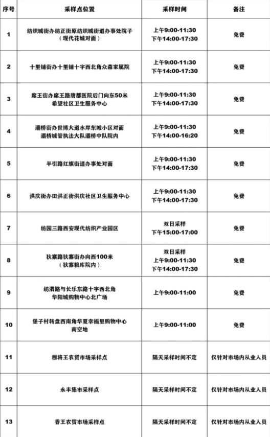 結(jié)合當(dāng)前疫情防控總體形勢,為進(jìn)一步做好復(fù)工復(fù)產(chǎn)和社會保供等方面保障工作,我市這些區(qū)域設(shè)置核酸檢測采樣點位,滿足市民需求。