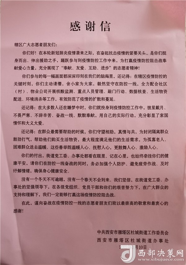 馳援抗疫顯石油擔當。截至目前,中油測井志愿者已協(xié)助完成718次扶老助殘、2884小時值守執(zhí)勤、3136戶入戶排查幫扶、15945人次流調、37047條信息統(tǒng)計、60831份物資配送保障、570389人次核酸檢測,頻頻收到來自各社區(qū)居民委員會的感謝信,得到社區(qū)小區(qū)工作人員、居民們的紛紛點贊。(供稿人:王曉菲)